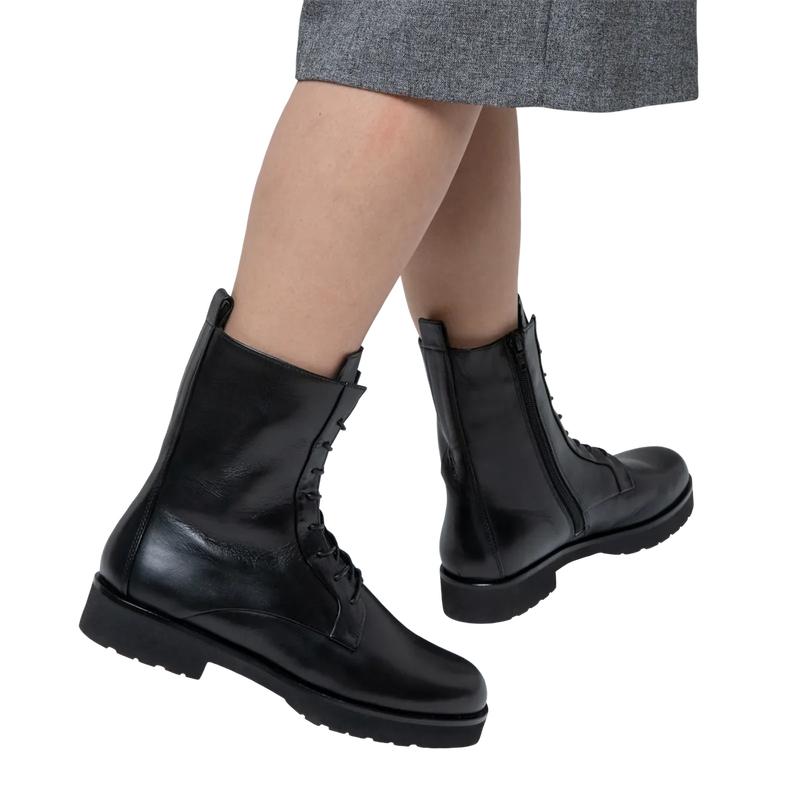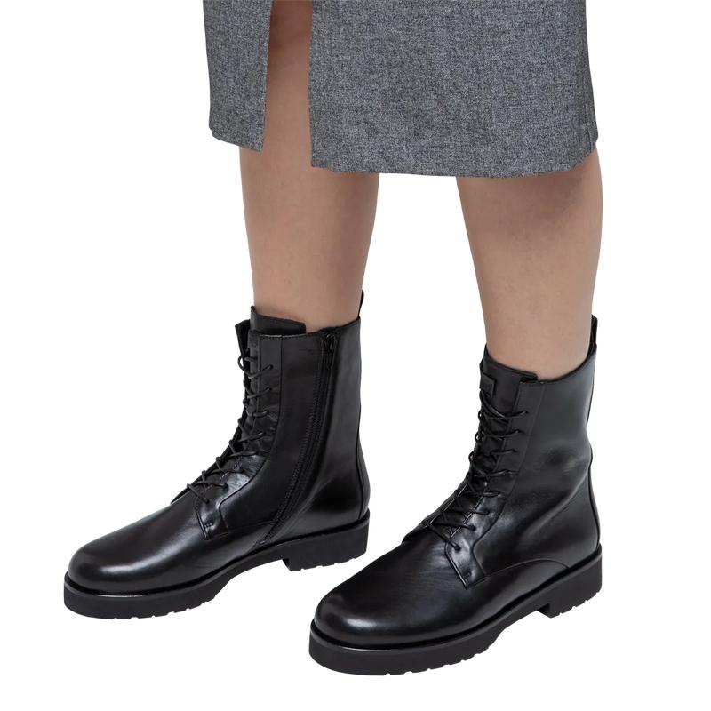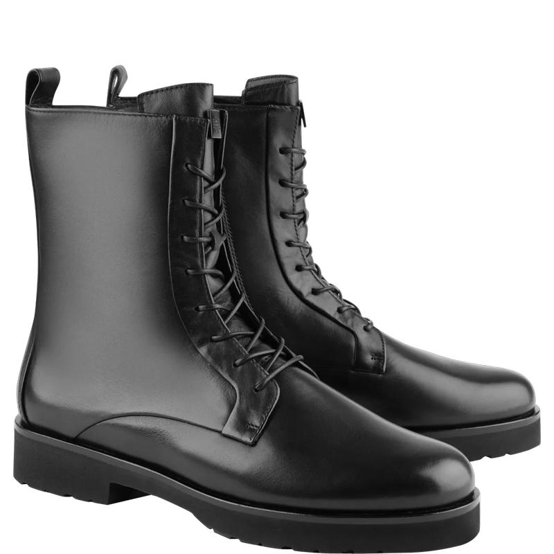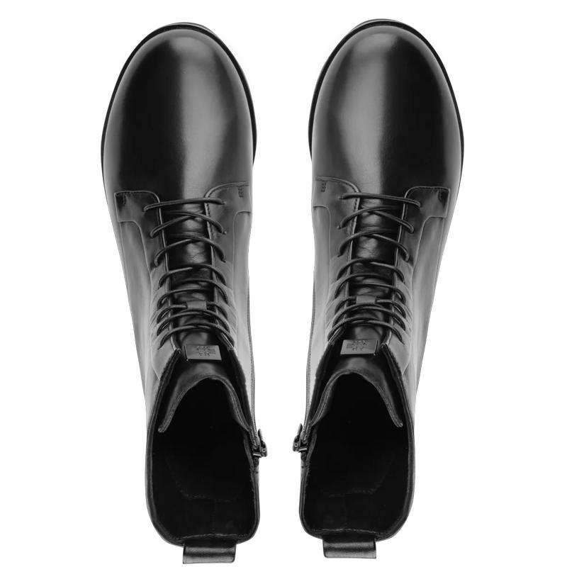 Ни шагу больше без ботинок на шнуровке! Особую привлекательность эта выдержанная в небрежной стилистике модель получила благодаря контрастному сочетанию светлой гладкой кожи и тёмной подошвы. Такие ботильоны стильно смотрятся в комбинациях с юбками и платьями, а образам с брюками придают прагматичности.