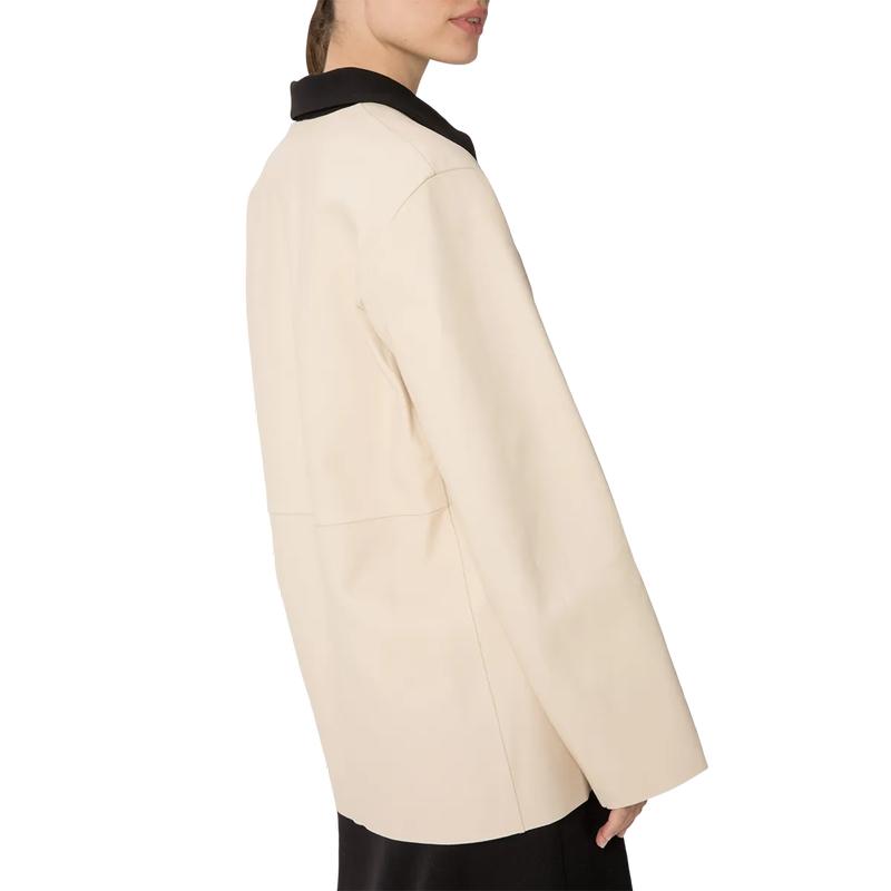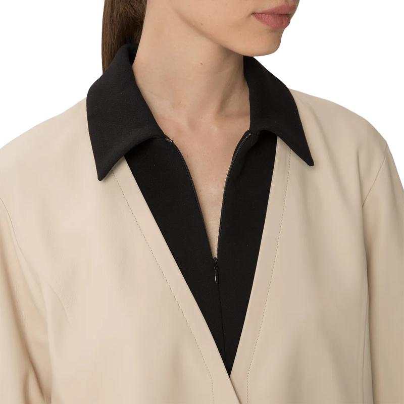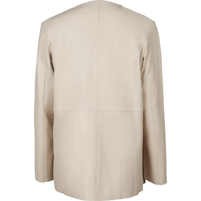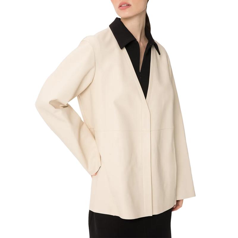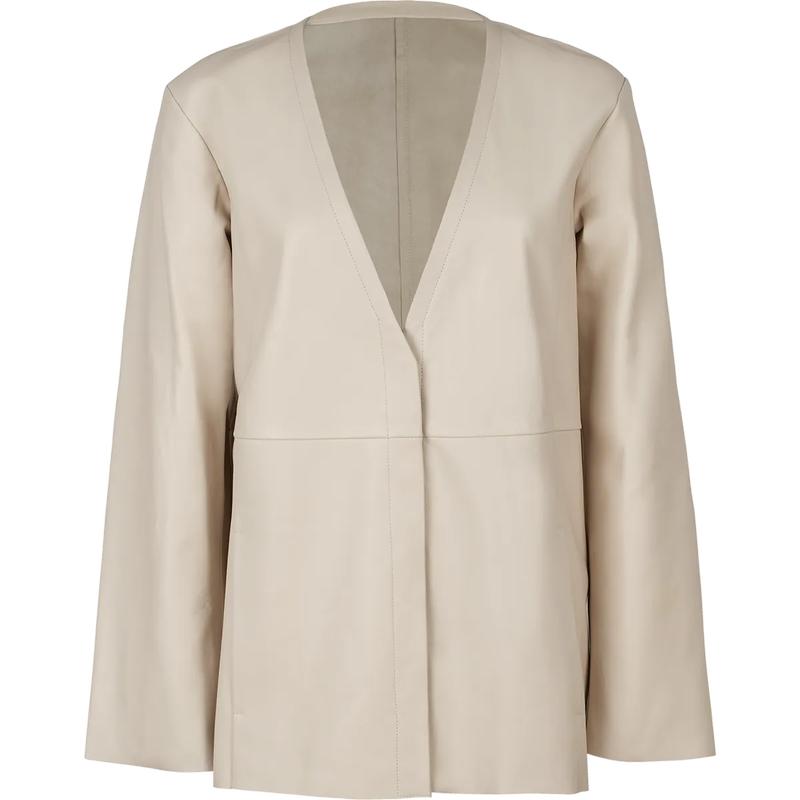 Лаконичная элегантность! Прямой и свободный крой куртки без воротника CHARLENE из чрезвычайно мягкой кожи ягнёнка выглядит легко и непринуждённо, а также превосходно сочетается с широкими брюками и струящимися юбками.