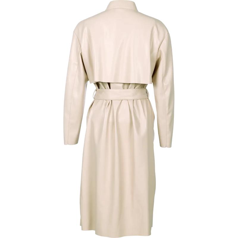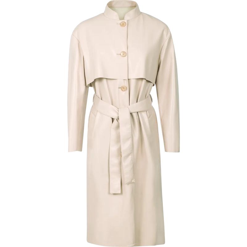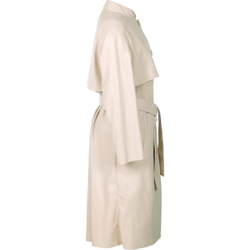 Изысканная интерпретация классического тренчкота – элегантный плащ, выполненный из необычайно мягкой и пластичной веганской наппы. Модель с воротником–стойкой не имеет подкладки и предлагается в комплекте с поясом. Идеальное дополнение для вашего гардероба – невероятно женственное и всегда элегантное. Такое изделие прослужит не один сезон и превосходно дополнит как классические, так и непринуждённые образы, наряды как с джинсами и футболками, так и на основе платьев. Сделано в Италии.