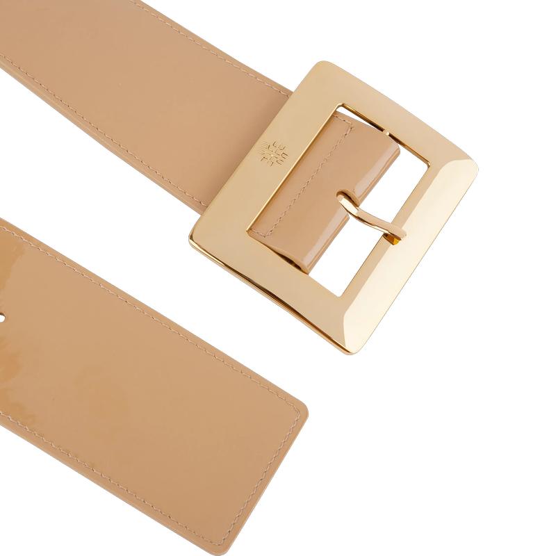 Наш широкий ремень из лаковой кожи с золотистой декоративной пряжкой великолепно подчёркивает талию. Своей лаконичной элегантностью ремень COLEEN дополнит множество образов. В комбинации с трикотажем такой аксессуар будет выглядеть так же эффектно, как и в сочетании с сатиновым жакетом или кружевным платьем. Глянцевый ремень – классика вне времени и трендов, которая не перестаёт поражать своей универсальностью.