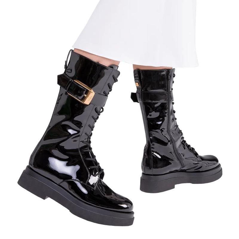Непринуждённые или дерзкие? Байкерские ботинки DEBBIE, изготовленные из сертифицированной кожи на этичном и экологически безопасном производстве, могут быть разными. Лаковая кожа и золотистая декоративная пряжка подчеркивают дерзость модели. Таким образом эта пара стала незаменимым аксессуаром при создании образов роскошных, но непринуждённых – особенно на основе платьев и юбок, а также в комбинации с кожаными джинсами.