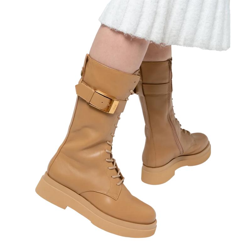 Непринуждённые или дерзкие? Байкерские ботинки DEBBIE, изготовленные из сертифицированной кожи на этичном и экологически безопасном производстве, могут быть разными. Лаковая кожа и золотистая декоративная пряжка смягчают дерзость модели. Таким образом эта пара стала незаменимым аксессуаром при создании образов роскошных, но непринуждённых – особенно на основе платьев и юбок, а также в комбинации с кожаными джинсами.