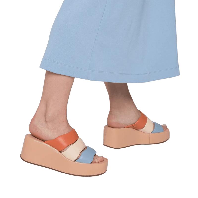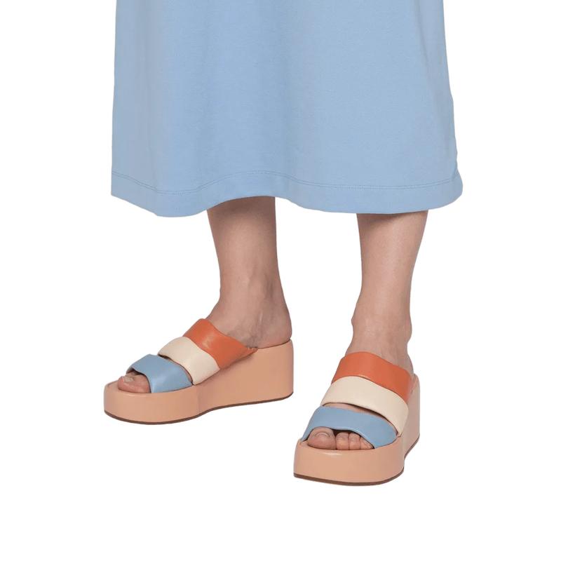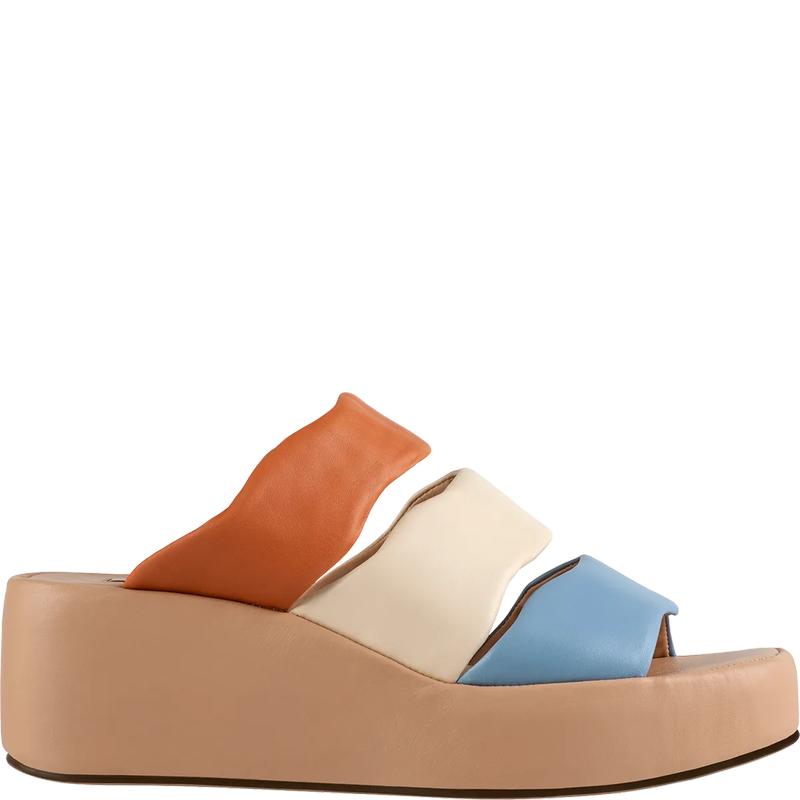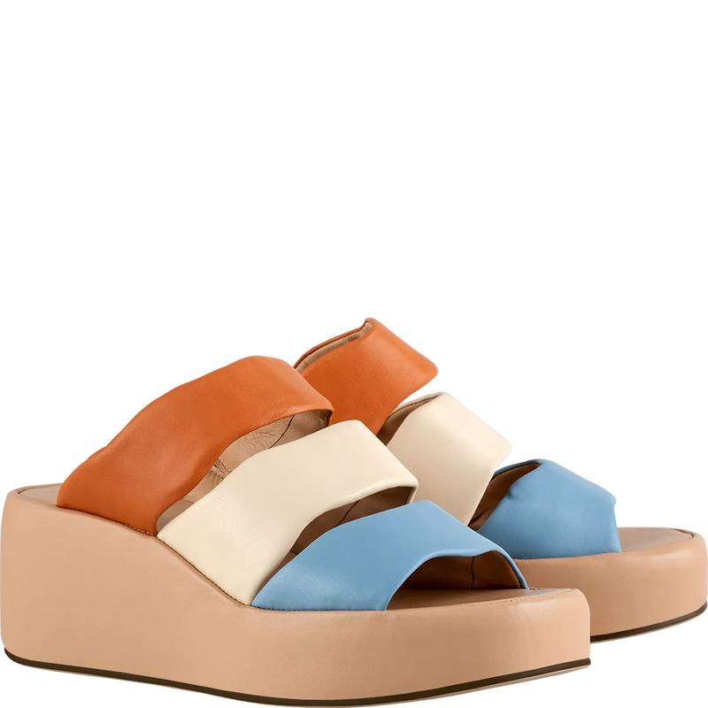 Женственное очарование и спокойные контрасты! Цветовая палитра мюлей на танкетке DUNE не только благоприятно сказывается на настроении, но и освежает любой образ. Высокая танкетка модели элегантно обтянута кожей, которая гармонирует с мягкими и воздушными кожаными полосками.