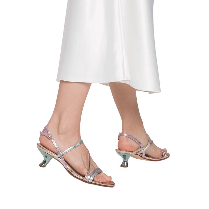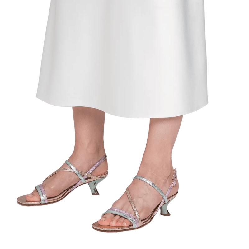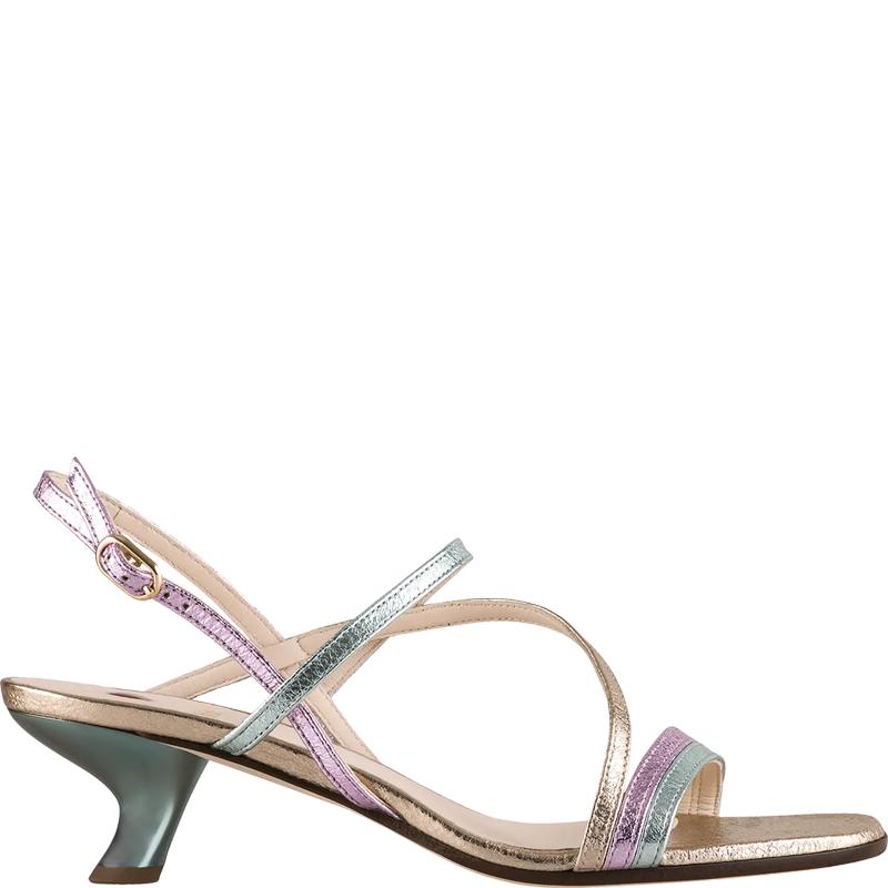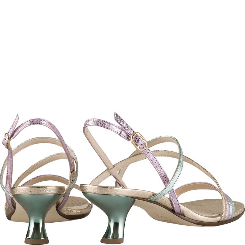 Летняя чувственность! Изящные кожаные ремешки великолепно сочетаются с необычным каблуком-шпилькой. Элегантное мерцание металлизированной кожи на босоножках EILEEN станет великолепным дополнением к летним образам – как повседневным, так и нарядным.