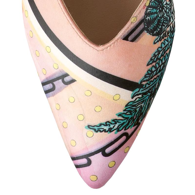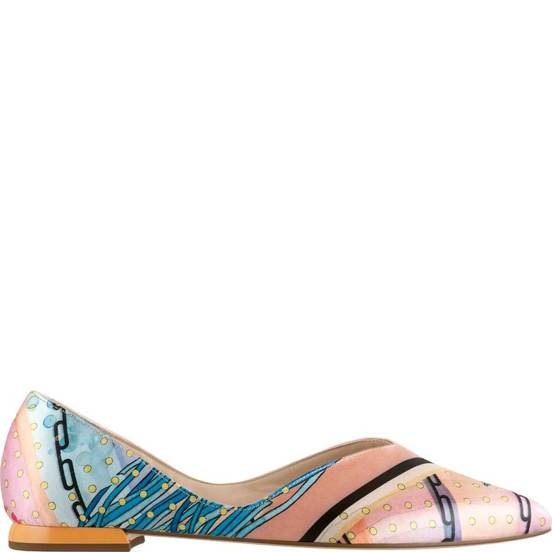 Наши балетки EVE внесут жизнерадостные нотки в любой образ. Благодаря пёстрому шёлковому принту с райскими птицами лаконичный дизайн заострённых балеток с V–образным вырезом станет эффектным дополнением к летним нарядам. О безупречном комфорте даже в условиях жаркой погоды и высоких температур позаботится кожаная подкладка.