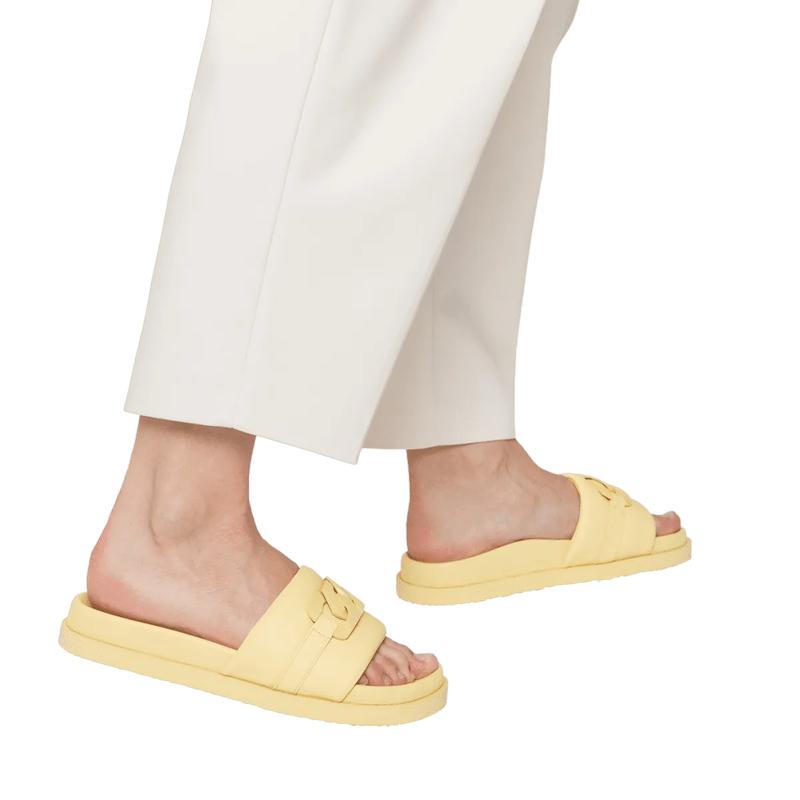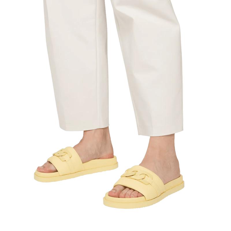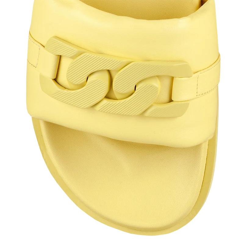 Безупречно комфортные мюли GEMMA – пара с характером, которая имеет все шансы стать вашей любимой этим летом. Роскошь комфорта. Лаконичный силуэт. Монохромный дизайн. Декоративная плоская цепь поверх воздушной кожаной планки. Подошва в тон. Стелька с анатомическими углублениями, которые гарантируют превосходный комфорт. Мы с нетерпением ждём первых дней лета, чтобы прогуляться в этих мюлях, изготовленных из сертифицированной и экологически безопасной кожи.