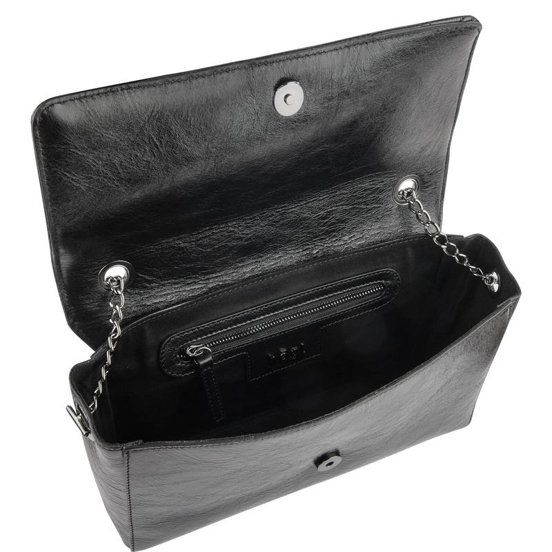 Сумка INES с цепочкой и декоративным элементом в оттенке тёмного серебра – аксессуар классически элегантный и невероятно практичный. Мягкая кожа ягнёнка первоклассного качества с искусной стёжкой мерцает лаковыми переливами. Классика вне времени и трендов, которая впишется в образы как сдержанные, так и элегантные – основа базового гардероба в этом сезоне.