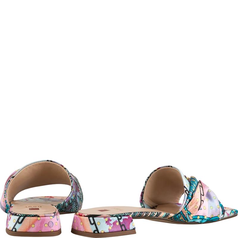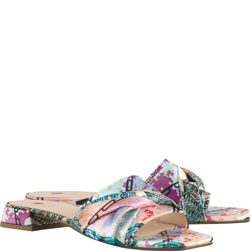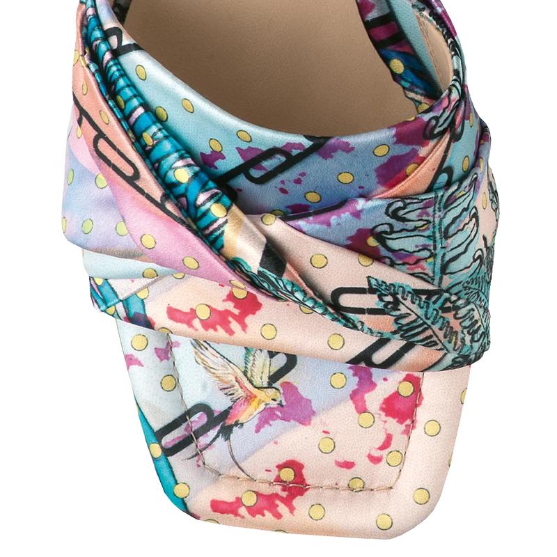 Поддайтесь воображению! Наши мюли MALI с акварельным шёлковым принтом покоряют фантазийным дизайном. Эта эффектная модель передаёт чистый оптимизм через роскошную цветовую гамму принта с райскими птицами. Однако эти мюли имеют все шансы стать вашей любимой парой летней обуви не только из–за своих внешних качеств, но и благодаря мягким ремешкам, которые повторяют изгибы стопы, словно драпированная шёлковая вуаль.