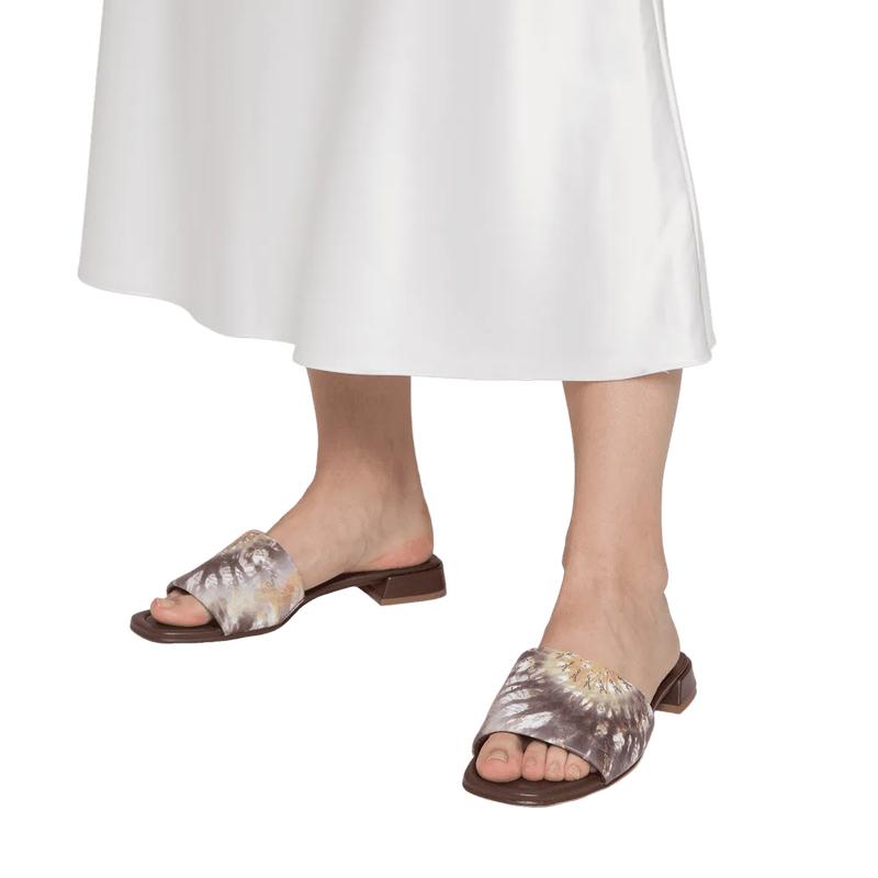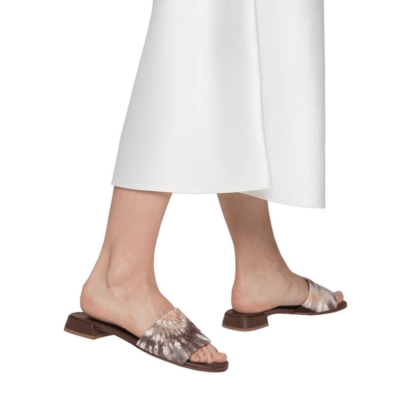 Tie-dye и батик снова в тренде! Для создания мюлей мягкая кожа ягнёнка была окрашена в нежные цветовые градиенты. Модель POPPY так же умело притягивает взгляды, как и сочетается с элегантными повседневными образами. Благодаря миниатюрному блочному каблуку мюли также безупречно комфортны и крайне универсальны.